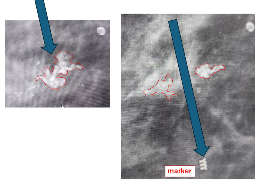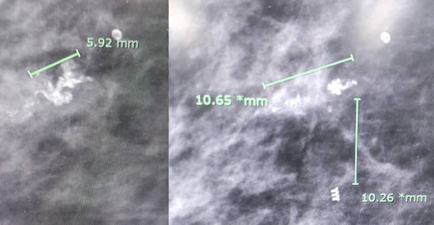 それにしても石灰化部位とmarker部位が離れているね? 10.2mmもあるね?